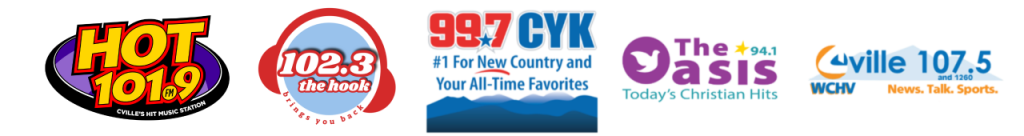 Hot 101.9, 99.7 CYK, 102.3 The Hook, 107.5 WCHV, 94.1 The Oasis