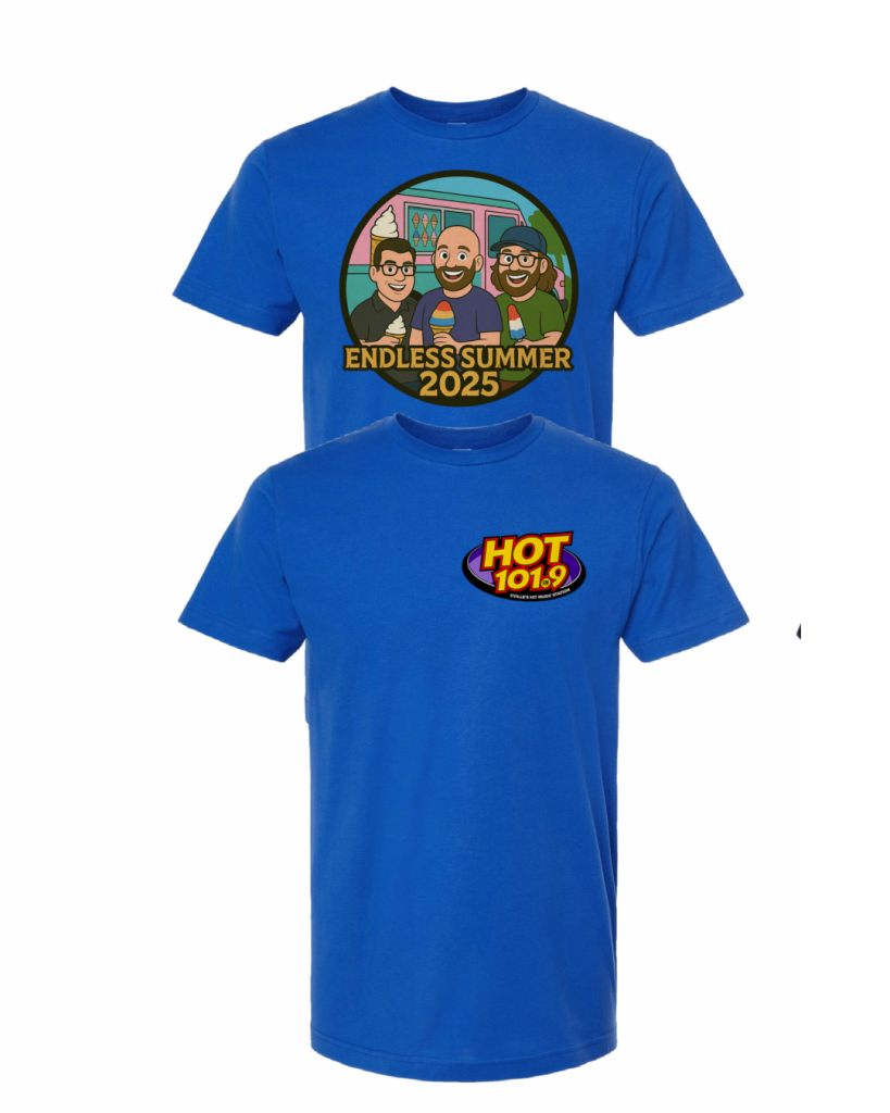 SUMMER TIME!!! Hot 101.9’s “LIMITED EDITION” Endless Summer 2025 T-Shirt has arrived! The only way to score a shirt is to drop by the T-Shirt Stop. All summer long we will be making stops all across Cville with your chance for you to grab the Limited Edition Shirts and some other goodies!